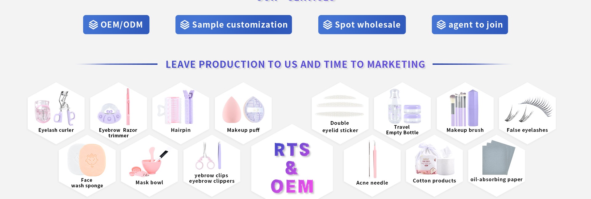 Prodotti principali: Piegaciglia, cipria, nastro a doppia palpebra, rifinitore sopracciglia, bigodino